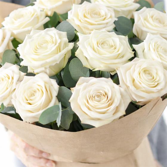 The iconic Valentine's bouquet. 12 of the most luxurious white roses, large headed and hand picked for their quality and beauty.