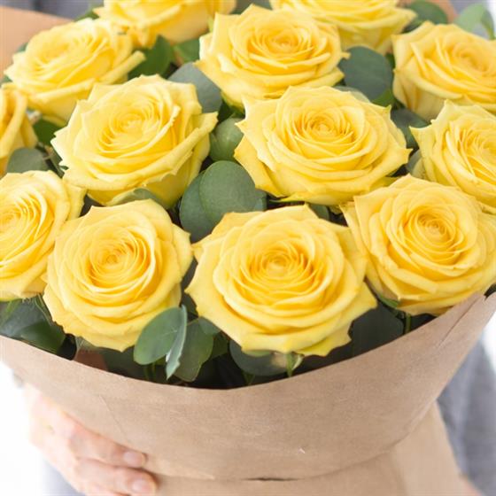 12 of the most luxurious yellow roses, large headed and hand picked for their quality and beauty.