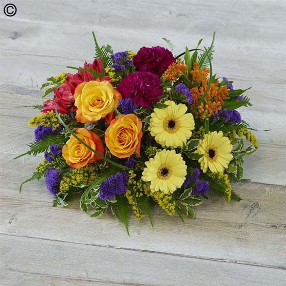 A vibrant posy featuring germini, roses, carnations and alstroemeria in rich shades.