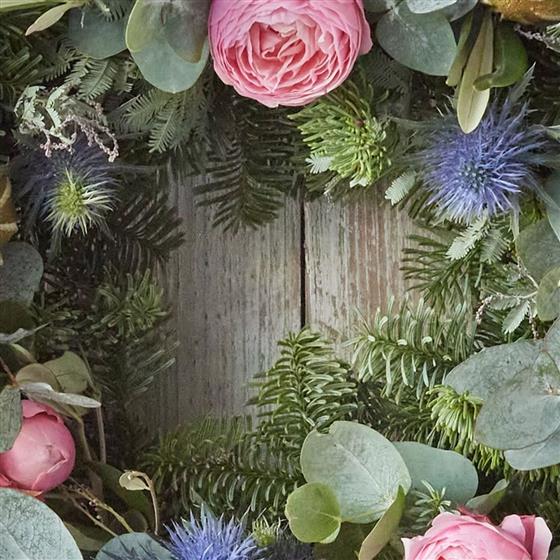 Not sure about the colours of the wreath? Let the florist choose! They'll pick beautiful blooms in an perfectly co-ordinating colour palette, and arrange them with glorious fresh foliage.