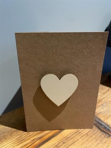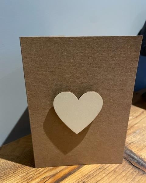 A6 size bespoke handmade card on natural craft card with a wooden heat - blank card to record the message you leave in your message instructions